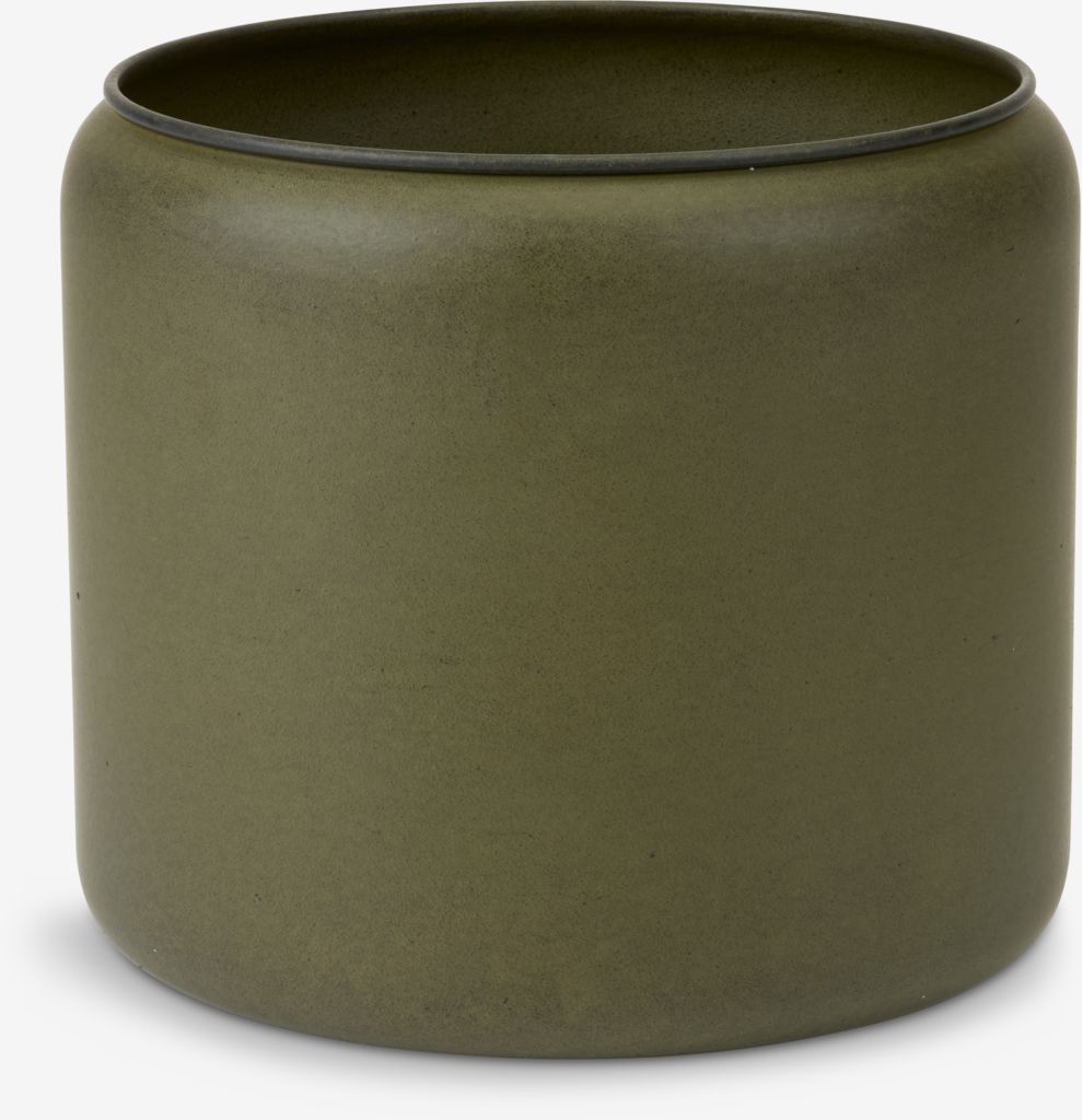 Donica ogrodowa w oliwkowej zieleni z proszkowanej stali. Ta donica zapewnia trwałe i stylowe miejsce dla twoich roślin, jednocześnie zdobiąc przestrzeń na zewnątrz. Ś31 x W27 cm