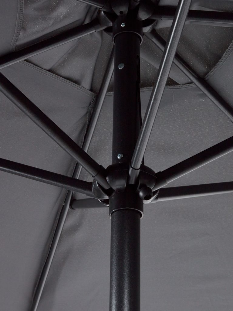 Parasol ogrodowy ma poliestrowy baldachim, który jest chroniony przed promieniowaniem UV. Oznacza to, że baldachim może wytrzymać ekspozycję na słońce bez blaknięcia koloru.