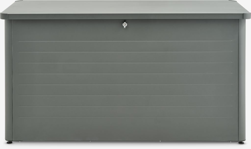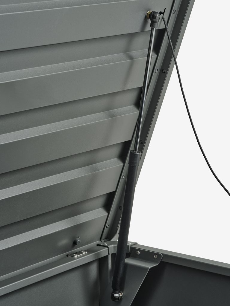 Skrzynia ogrodowa ze stali galwanizowanej. Z ułatwiającą otwieranie pokrywą hydrauliczną. Mrozoodporna. S160 x W83 x G79 cm