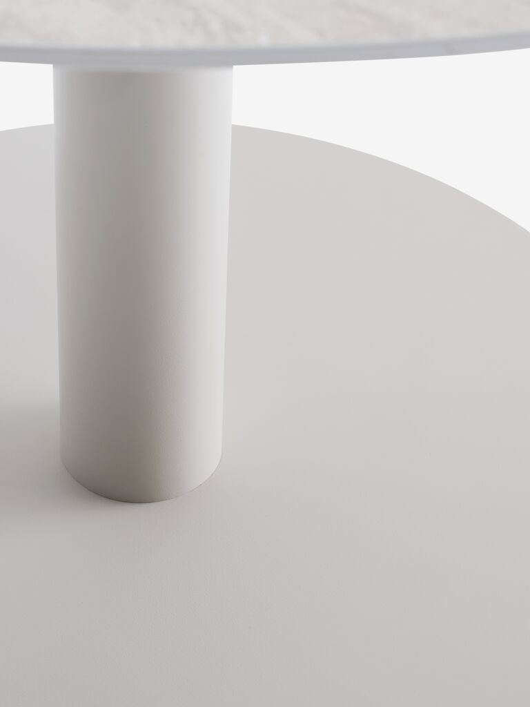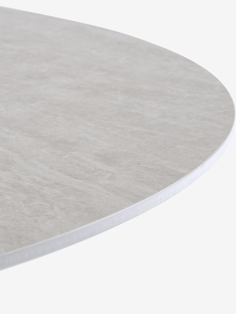 | Materiał | Rama/stelaż: Kamień spiekany, Blat: Cement, Nogi: Stal |