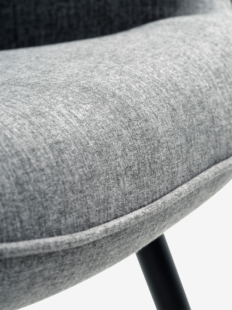 Tkanina. Siedzisko i oparcie wyściełane pianką. Nogi ze stali. S72 x W97 x G80 cm