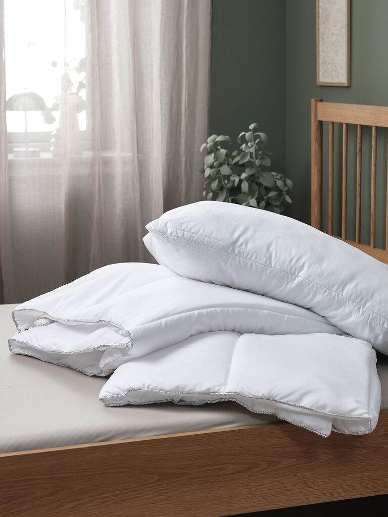 | Pielęgnacja | Prać i suszyć w pralce lub pralkosuszarce o ładowności przynajmniej 7 kg. Wietrzyć i wstrząsać regularnie, nie trzepać oraz nie odkurzać |