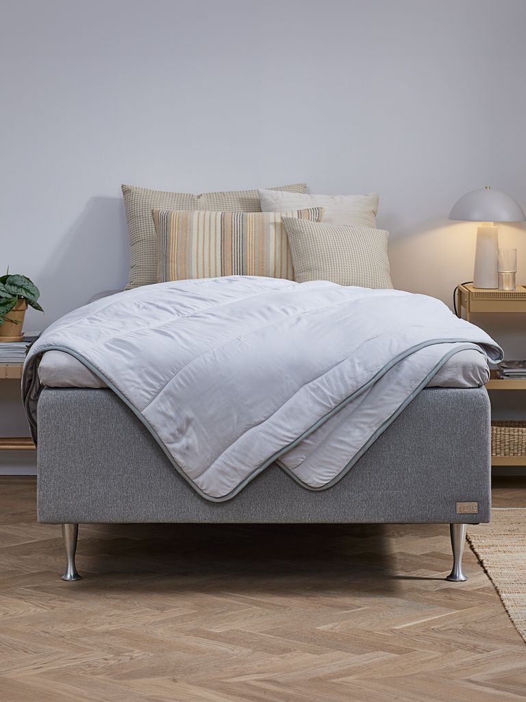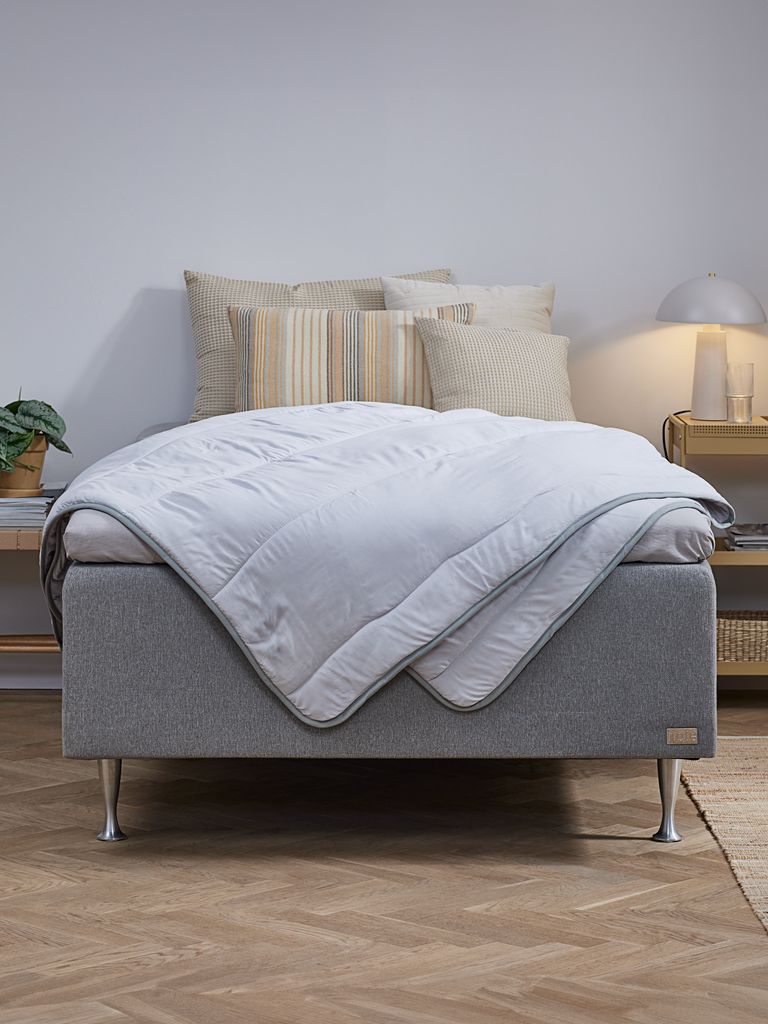 Een heel licht en zacht dekbed. Qua warmte precies goed voor mij!