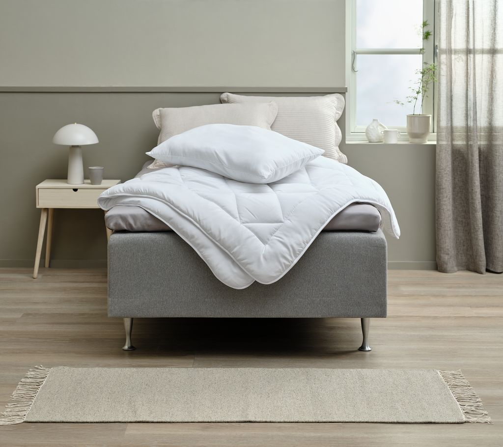 | Pielęgnacja | Prać i suszyć w pralce lub pralkosuszarce o ładowności przynajmniej 7 kg. Wietrzyć i wstrząsać regularnie, nie trzepać oraz nie odkurzać |