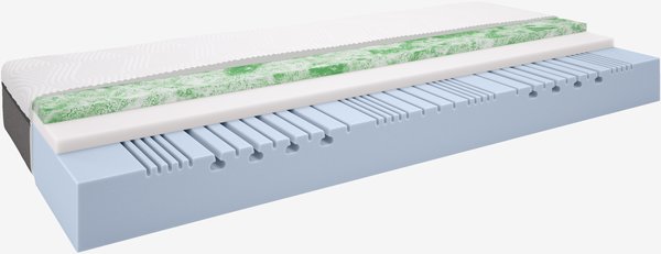 Materac piankowy 90x200 cm o wysokości 24 cm z dwoma poziomami twardości i 7 strefami komfortu zapewniającymi wyjątkowo ergonomiczne podparcie. Rdzeń z 3 cm elastycznej pianki Comfort+ i 20 cm pianki poliuretanowej, idealnie dopasowuje się do kształtu ciała. Poszycie z możliwością prania.