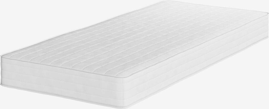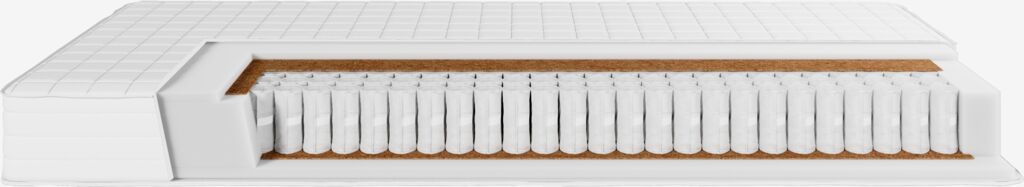 Materac sprężynowy 90x200 cm o grubości 19 cm, dwustronny, z dwoma poziomami twardości i sprężynami kieszeniowymi 256/m², podzielony na 5 stref komfortu zapewniających precyzyjne, optymalne wsparcie. Materac jest wyściełany włóknem kokosowym i pianką poliuretanową. Pokrowiec z 100% poliestru (w 100% z recyklingu) z grubym pikowaniem, który można prać.