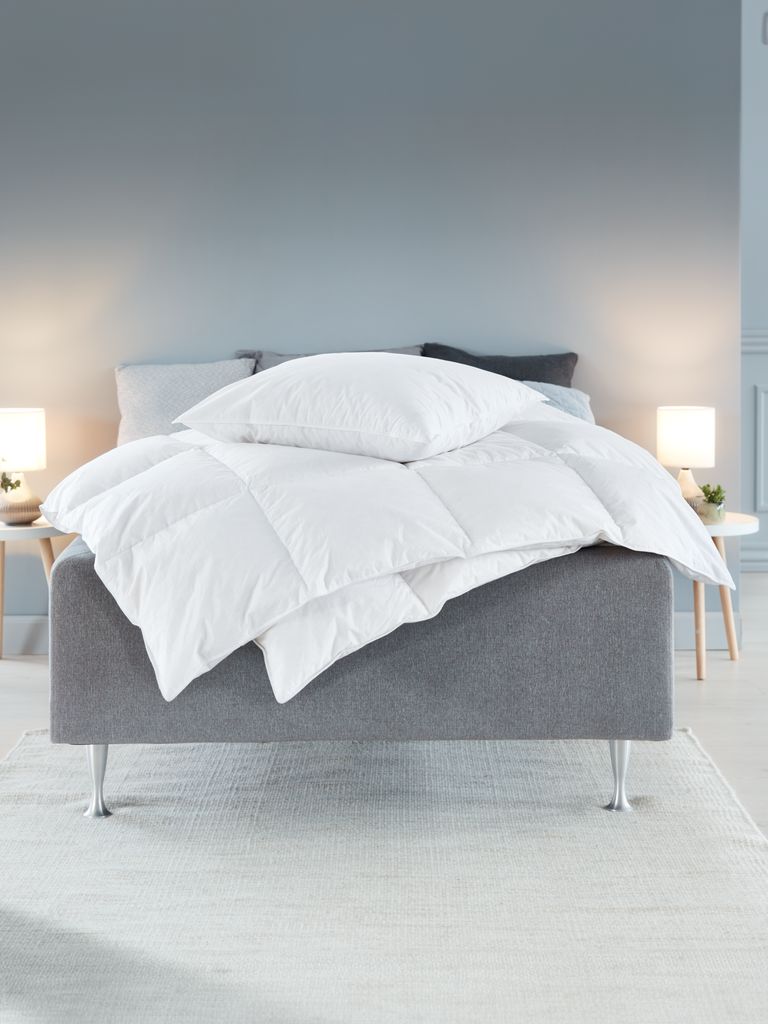 Poduszka z pierza kaczego 50x70 cm z wsadem 90% białe pierze kacze/10% puch kaczy, 750 g. 100% bawełniane poszycie. Puszystość 200. Pranie 60°C.