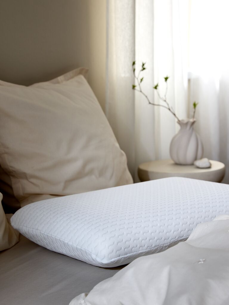 Poduszka z pianki termoelastycznej VIGLEN marki WELLPUR® została zaprojektowana tak, aby zapewnić stabilne podparcie przez całą noc. Rdzeń z pianki termoelastycznej AIR pomaga odciążyć ciało, zapewniając komfortowy i spokojny sen. 40x60x11 cm